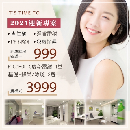 2021迎新專案 新朋友好康來啦~~~ 明星療程4選一 ⑨⑨⑨ ▶杏仁酸 ▶淨膚雷射 ▶腋下除毛 ▶Q嫩保濕