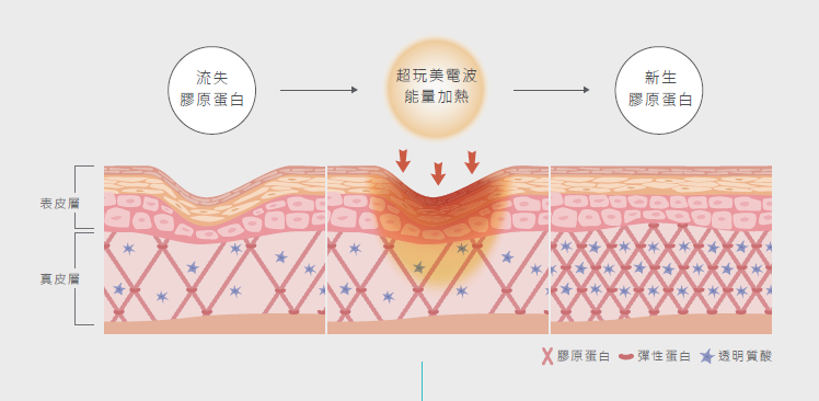 超玩美電波為美國FDA認定的非侵入式單極電波,有效緊膚除皺及新生膠原蛋白。