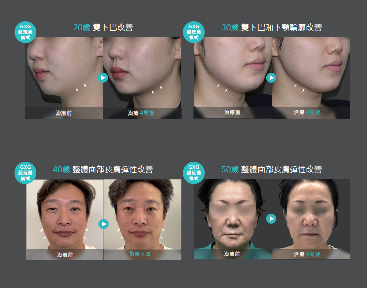 獨特 GXG 超玩美模式,可將皮膚由淺層至深層全面加熱,達到全方位的緊緻效果並延長熱能保留。超玩美電波引領電波科技新標竿,讓緊緻不只是感覺,而是立即可見的理想狀態。